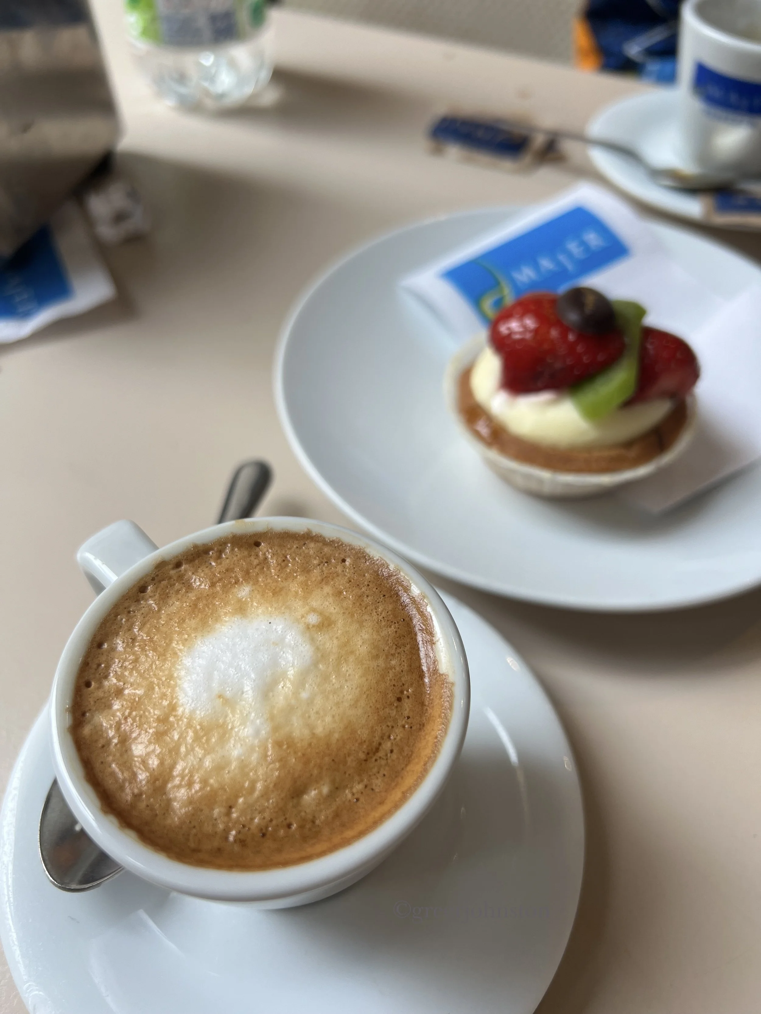 After, we headed back toward Campo San Giacomo da l’Orio where, en route to the museum, we had passed by a window full of focaccia and pizza. It turned out to be one of the locations of Majer, a local franchise that has everything from breakfast to lunch, aperativo, and dessert. We enjoyed some pizza while people watching. Next door, there was a line out into the piazza for Gelato di Natura, another local chain. Although I was tempted to see what they were all waiting for, I already had my eye on a fruit tart at Majer, which I enjoyed with an after lunch caffè.