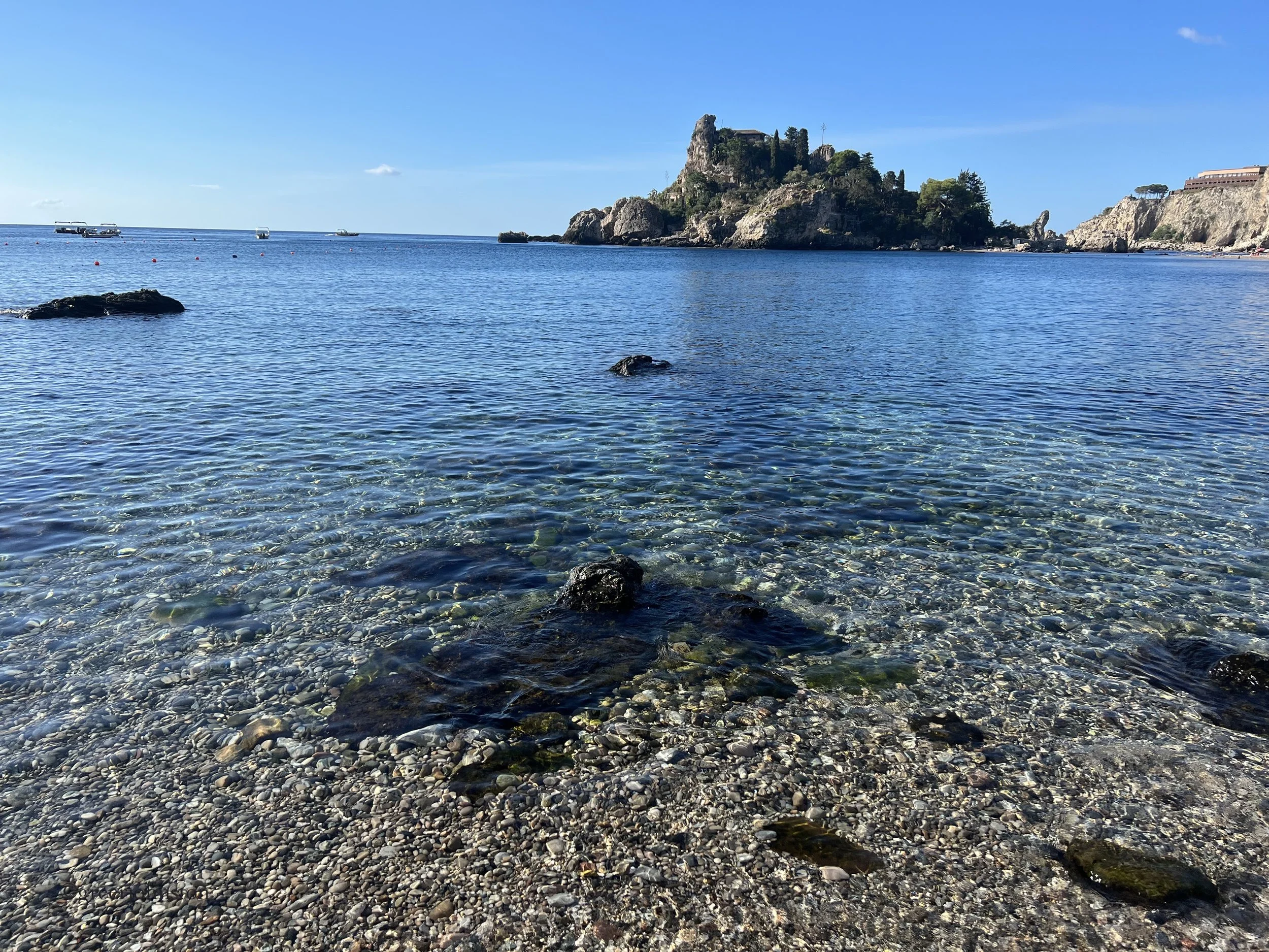 So how did Taormima redeem herself for me? The highlight of the trip, beyond seeing a friend who I haven’t seen for years, was our outing to Isola Bella. We took the staircase down from Via Guardiola Vecchia 46 to enter the Riserva Naturale Orientata - Isola Bella. We stayed right near where the stairs end and to the left, not entering the lido area nor the small island, which I believe requires a separate entrance fee. We arrived around 8 am to a nearly empty beach and pristine water. We had a lovely swim on the smooth pebble beach before the crowds began arriving around ten.