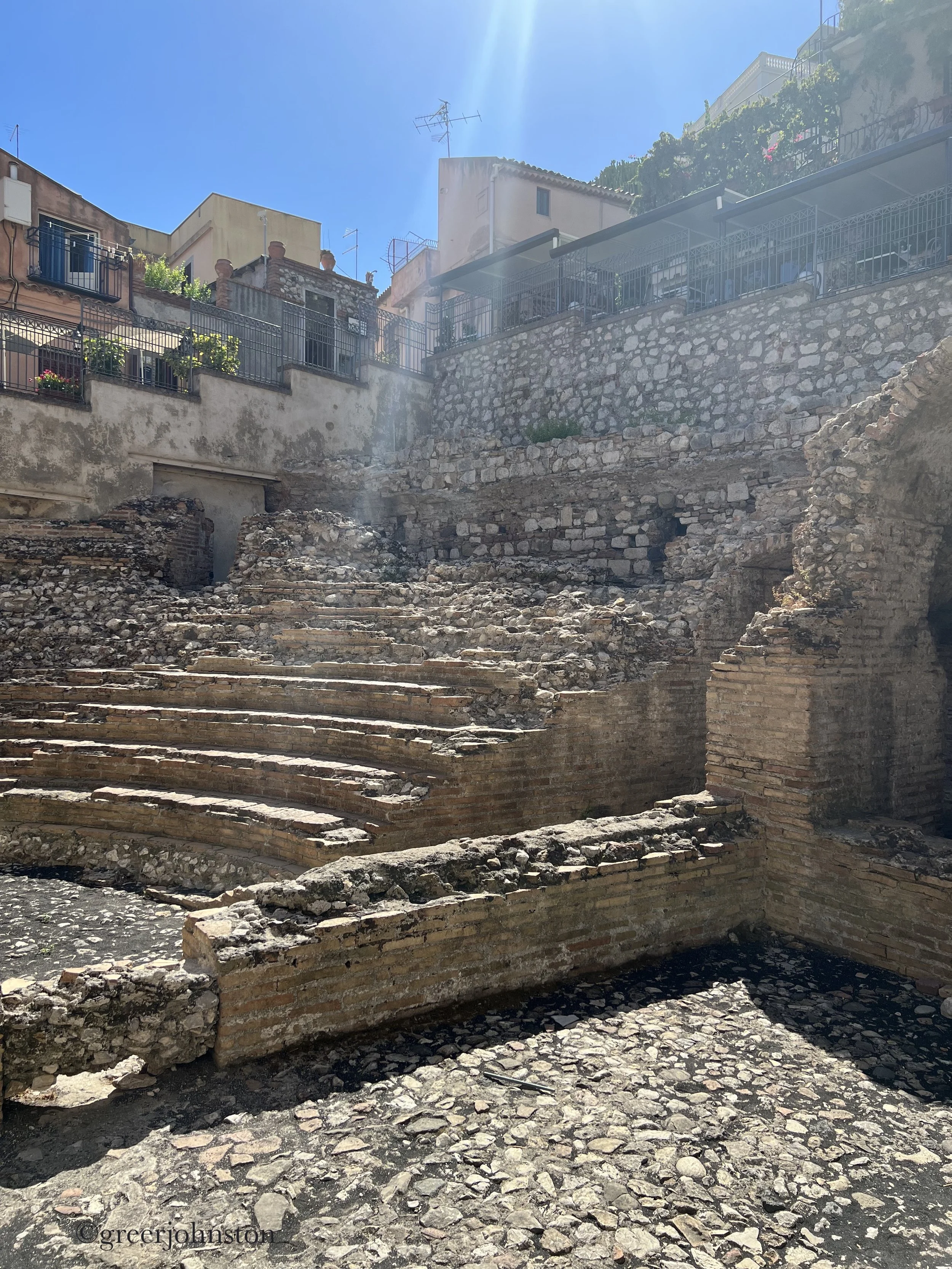 I think I’m just spoiled. Living in Italy and Sicily has spoiled me with ancient ruins being part and parcel of the local scenery. Which is why I was a little under-whelmed by the Teatro Antico di Taormina, the ancient Greek theater. A 10€ admission fee for about 15 minutes in line and about one hour exploring inside. The theater is commonly used for concerts and shows in the nighttime, which I can imagine to actually be a spectacular setting. However, on the day I was there, the technicians were setting up for some kind of Egyptian show, therefore any hope of capturing the signature shot of Etna in the backdrop of the theater were marred by anachronous obelisks and sphinxes. I was more impressed by the smaller, more intimate Odeon ruins, which are free to enter and have survived smack-dab in the middle of the city.