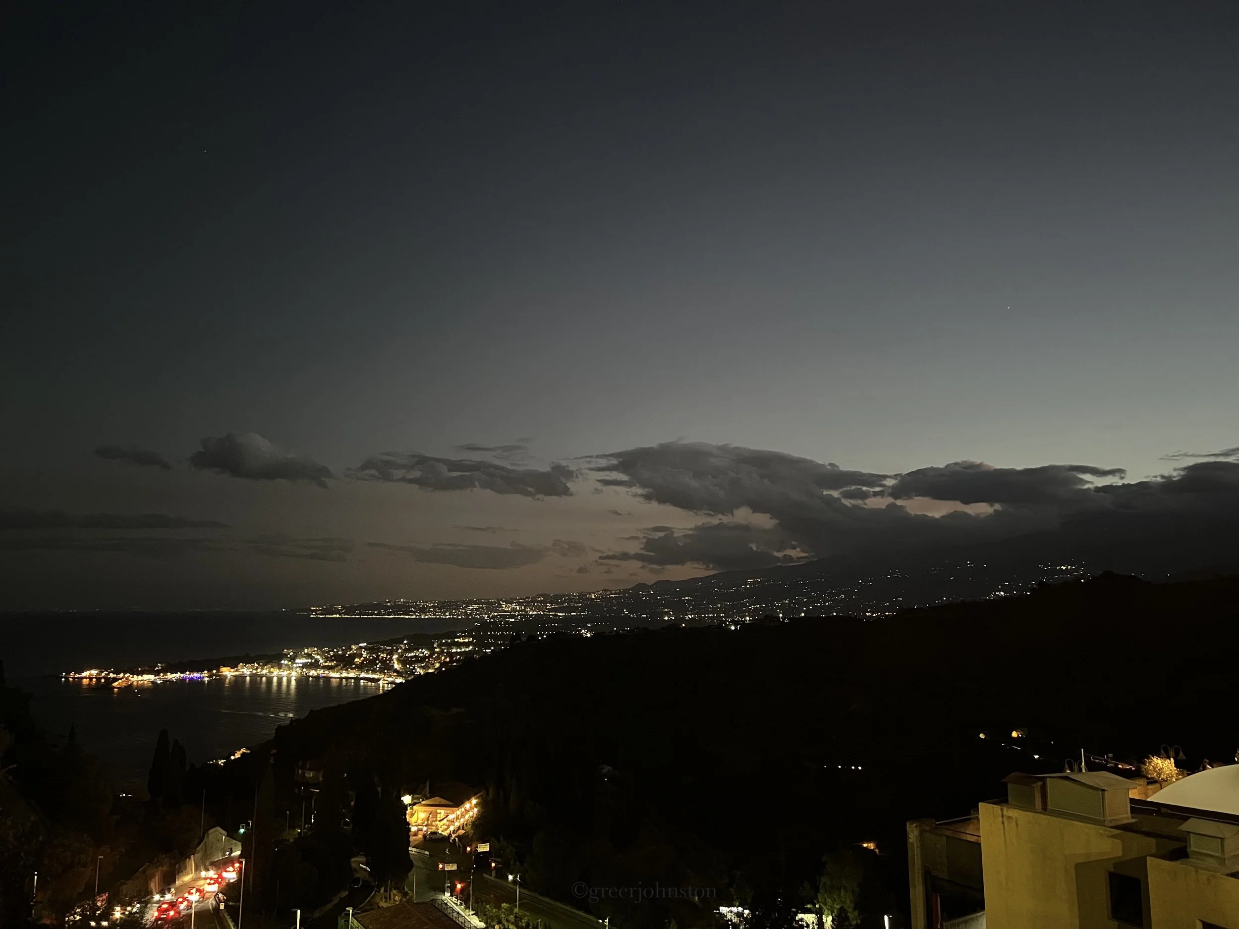 My friends and I likewise had a nice cocktail aperitivo at Chapeau! followed by late-night street food at L’Arco -About pizza. We took our treats to the nearby park, the Terrazza Panoramica su Giardini Naxos, where you can sit and see the night lights of the nearby towns and coastline.