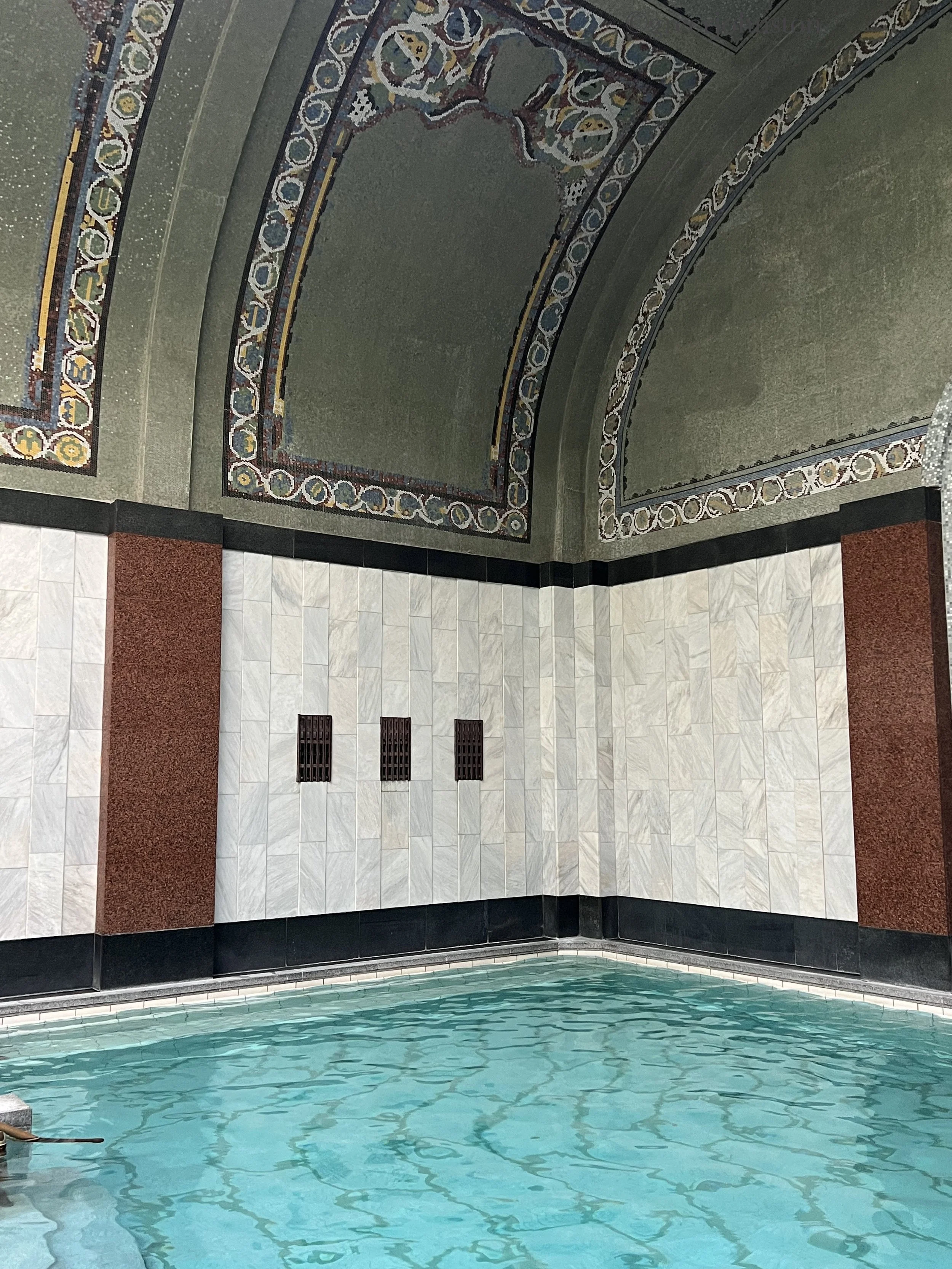 In the end, we chose to visit the Gellért Baths. While there are outdoor baths, I appreciated that here they are mostly indoor, as I would not want to be in the sun. The architecture and design is incredibly beautiful Art Nouveau. I was enchanted.
