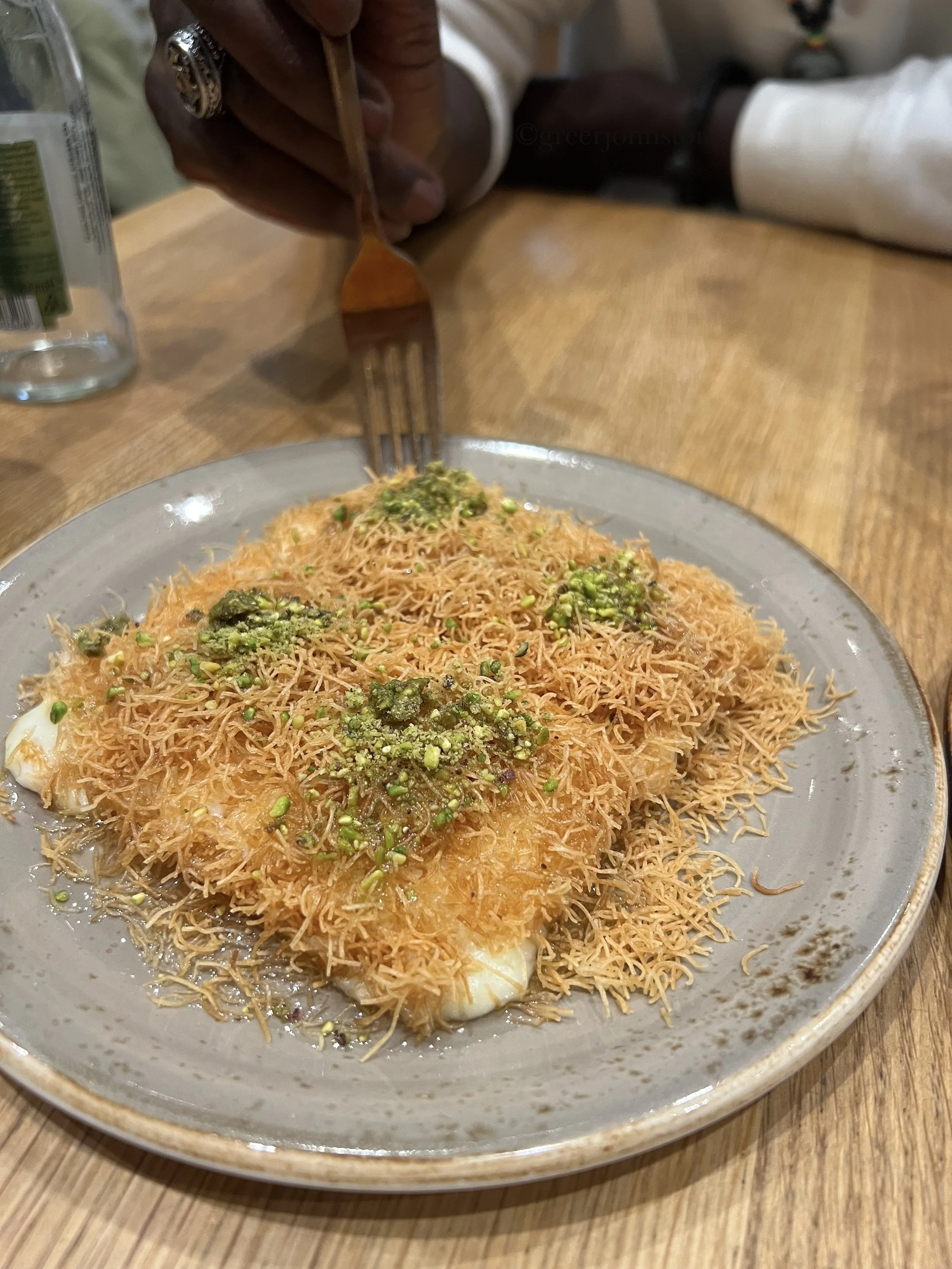 First up, there was the Lebanese restaurant, Mozata. Long craving my favorite Arabic foods, we ordered a spread to have a nice sampling. To start, they have a lovely drink menu with both alcoholic and non-alcoholic drinks. I could have ordered everything, but we settled on hummus fatteh (a dish of whole chickpeas with yogurt, bread chips, and pine nuts), falafel (fried balls of mashed chickpeas), kibbeh (friend balls of beef and bulger), and cheese rakakat (cheese wrapped in a thin dough and fried), which I ordered alongside thoum, a garlic sauce, to dip in. We also order kunefe, a typical dessert of cheese, shredded dough, sugar syrup, and pistachios. Needless to say, we went home with leftovers which made for a great snack later.